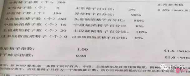 丈夫推脫再三,較終還是決定檢查,檢查報(bào)告上少精癥、精子畸形率98%這樣的檢查報(bào)告讓夫妻兩個(gè)頓時(shí)陷入了迷茫。